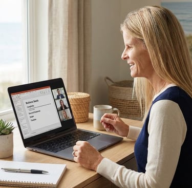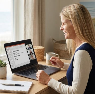Working with me feels steady, practical, and anchored in the real world your people operate in. We slow down just enough to get the right problem and outcomes crystal clear, then we move with momentum to build learning and AI-supported workflows that actually get used.